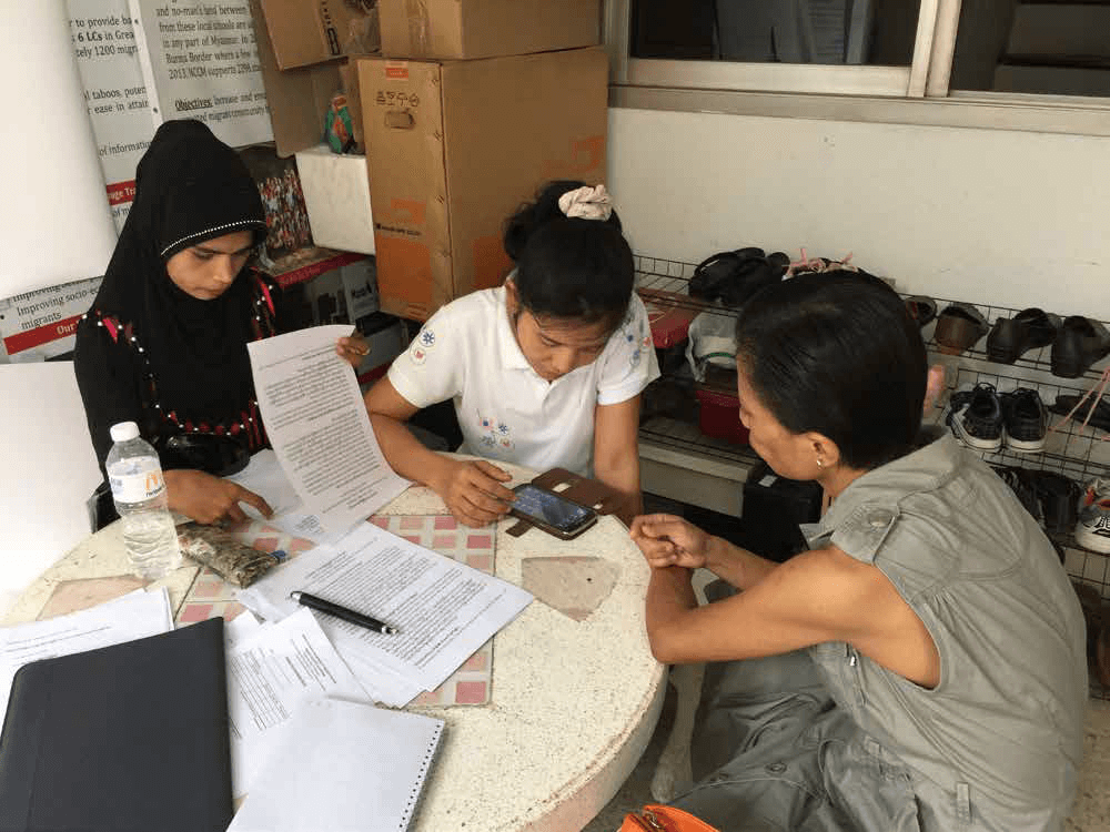 My interpreter and I doing interview with Burmese migrant workers in Bangkok.
