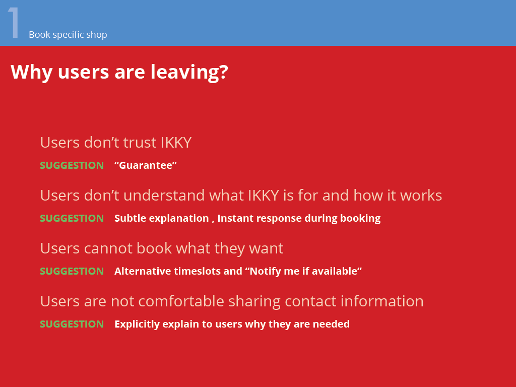 The result pointed out critical problems that deterred users from using ikky for booking.
