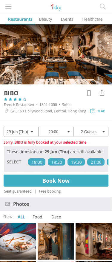 Recruited users were asked to use ikky’s app to perform the tasks of searching a restaurant and making a booking for their next dinner date.