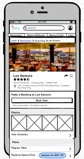 Recruited users were asked to use ikky’s app to perform the tasks of searching a restaurant and making a booking for their next dinner date.