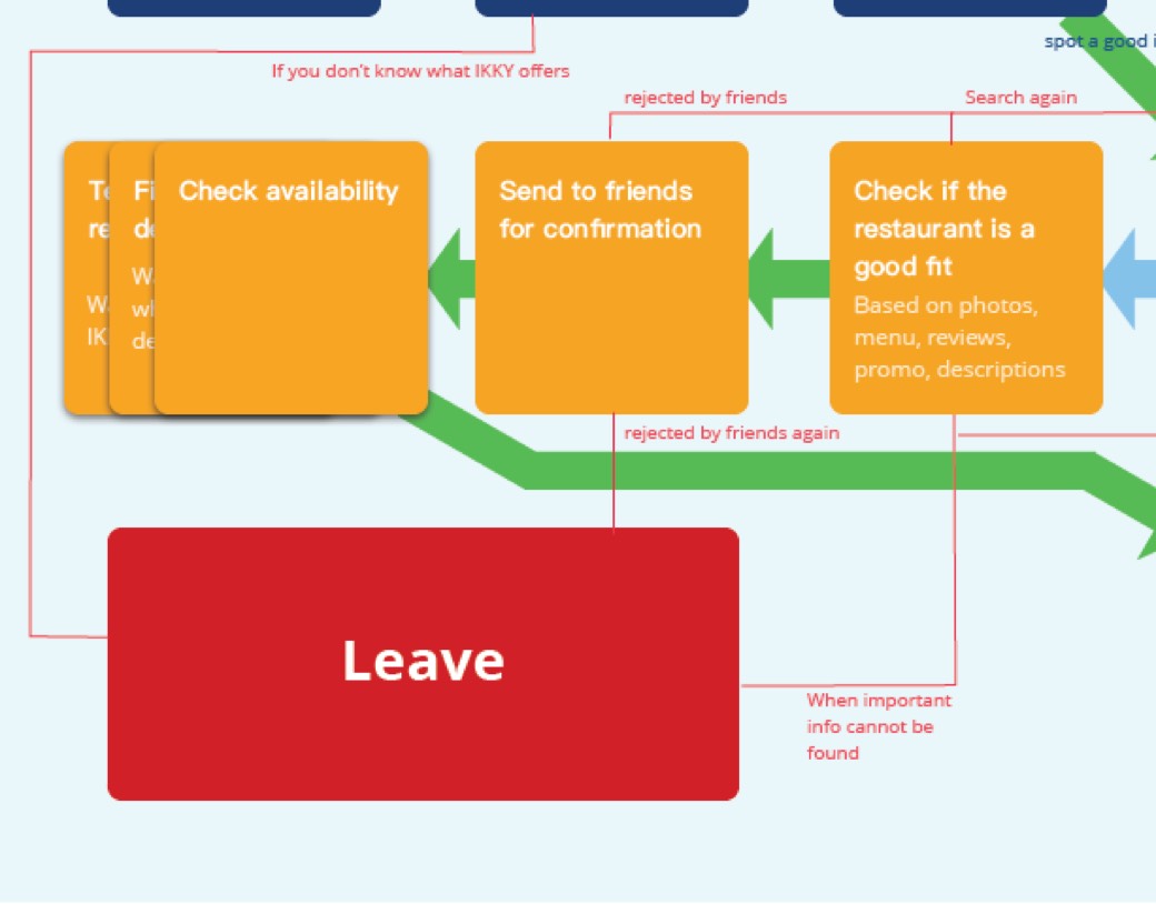 To dig deeper into why ikky failed to meet users’ expectations, I conducted a flow analysis on the three main use cases based on GA data and user testing findings.
